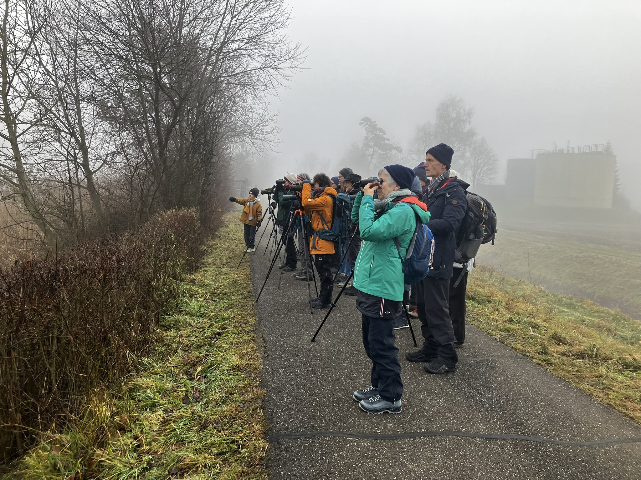 Am Samstag, 17. Januar 2026, waren wir auf Wasservogelexkursion am Klingnauer Stausee im Kanton Aargau. Angekommen am Bahnhof Döttingen fanden wir uns in dicken Nebel gehüllt wieder. Die ersten Meter waren wir deshalb vor allem akustisch unterwegs und konnten einige Buntspechte und Finken hören. Auf einer Erle neben dem Weg turnte ein fleissiger Trupp Erlenzeisige herum. Wir sahen gerade so zum ersten Schilfrand und dort zeigten sich uns mehrere Wasserrallen. Aufgrund der Kälte und der schlechten Sicht beschlossen wir, eine Pause im BirdLife Naturschutzzentrum einzulegen.